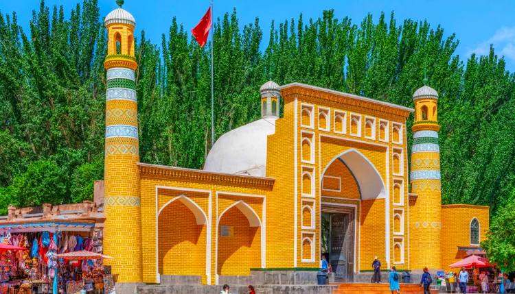 艾提尕爾清真寺位於中國新疆喀什市中心的艾提尕爾廣場西側,始建於1442年,是新疆規模最大的清真寺,佔地總面積達1.68萬平方米。作為一座具有濃郁民族風格和宗教色彩的古建築羣,其建築以伊斯蘭風格爲主,門樓高12米,兩側聳立着宣禮塔,寺內禮拜大殿由140根雕花木柱支撐,宏偉壯觀。該寺不僅是重要的宗教活動中心,每天有數千人在此禮拜,主麻日(星期五)人數可達上萬,也是喀什古城的象徵,2001年被列爲全國重點文物保護單位。每逢伊斯蘭重大節日,這裏更成爲各族穆斯林歡聚慶典的重要場所。