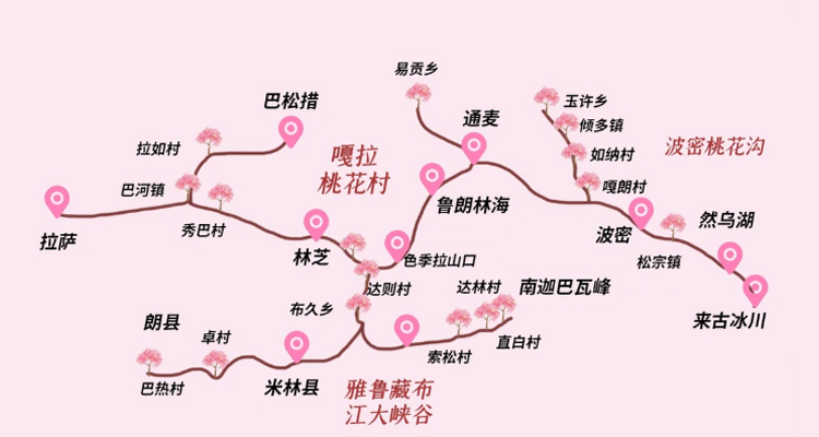 3月底至4月初是林芝桃花全盛期,此時: