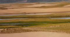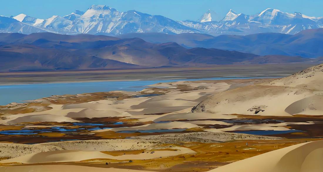 馬泉河濕地位於西藏日喀則市仲巴縣境內,是雅魯藏布江的源頭上遊濕地,平均海拔約4700米。這片高原濕地被喜馬拉雅山脈和岡底斯山脈環繞,由河流濕地、沼澤濕地和湖泊濕地構成,形成“沙丘、河流、草甸、雪山”共存的奇特景觀。這裡是黑頸鶴、斑頭雁等多種珍稀鳥類的棲息地,也是重要的水源涵養區。濕地目前為自然保護區,非傳統景區,全年開放且無需門票,遊客可自由進入,但必須嚴格遵守生態保護規定,禁止任何破壞濕地環境、驚擾野生動物的行為。