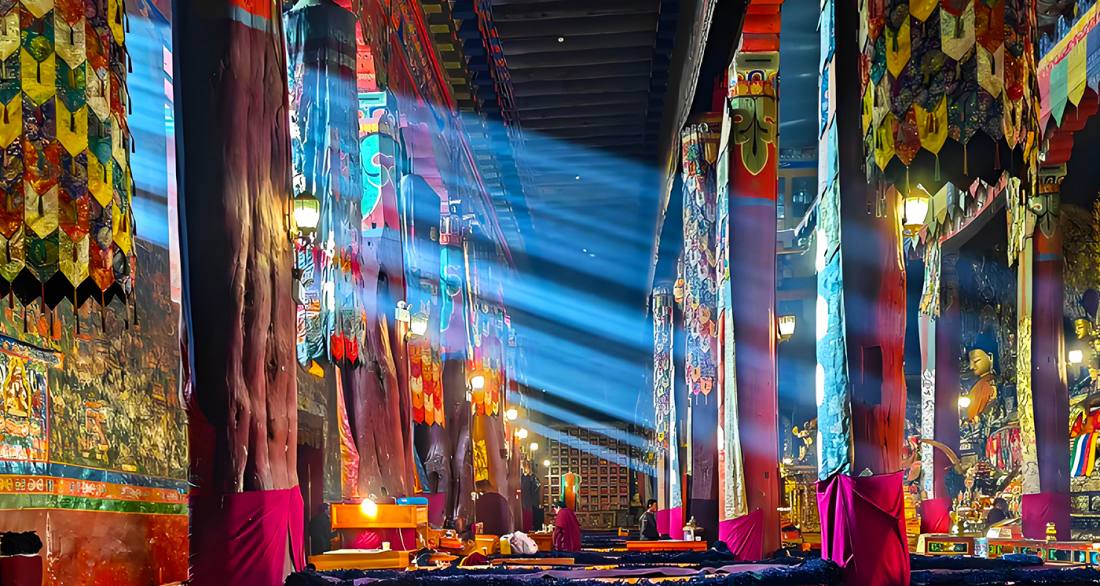 Sakya Monastery is located at the foot of Bumpa Mountain in Sakya County, Shigatse, Tibet, at an altitude of approximately 4,316 meters. Founded in 1073 AD, it is the ancestral temple of the Sakya sect of Tibetan Buddhism. The architectural complex is distinguished by walls painted in the three colors of "red, white, and blue," symbolizing Manjushri, Avalokiteshvara, and Vajrapani, which is why the Sakya sect is also known as the "Variegated School." Its central hall, Lhakhang Chenmo, houses a priceless collection of over 80,000 Buddhist scriptures, palm-leaf manuscripts, and Yuan Dynasty murals, earning the monastery the title "Second Dunhuang." Once the political and religious center of Tibet during the Yuan Dynasty, Sakya Monastery bears witness to significant historical exchanges between Han Chinese and Tibetan cultures. Today, designated as a National 4A-level Tourist Attraction and a Major National Historical and Cultural Site, it serves both as a vital religious sanctuary and a grand museum showcasing Tibetan culture and history.