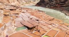 The Yanjing Salt Terraces are situated along the banks of the Lancang River in Naxi Ethnic Township, Markam County, Chamdo, Tibet, at a relatively high altitude. They served as a key station on the ancient Tea-Horse Road. This site preserves a centuries-old traditional manual salt-making technique, which has been designated as a National Intangible Cultural Heritage. Built into the mountainside and supported by wooden frames compacted with clay, the numerous terraces span both riverbanks. Due to differing soil compositions on either side of the river, the west bank yields red salt (peach blossom salt), while the east bank produces white salt, creating a unique “two-color river” effect. Each spring when peach blossoms bloom, sunlight illuminates the layered terraces like a painter's palette, reflecting the snowy mountains and blue sky—earning the area the poetic title “Mirror of the Sky”. Local villagers still employ ancient methods to extract brine and produce salt, with some terraces utilizing modern technology for brine transport, blending tradition and innovation. Currently classified as a high-level tourist attraction, the site is actively seeking UNESCO World Heritage status.