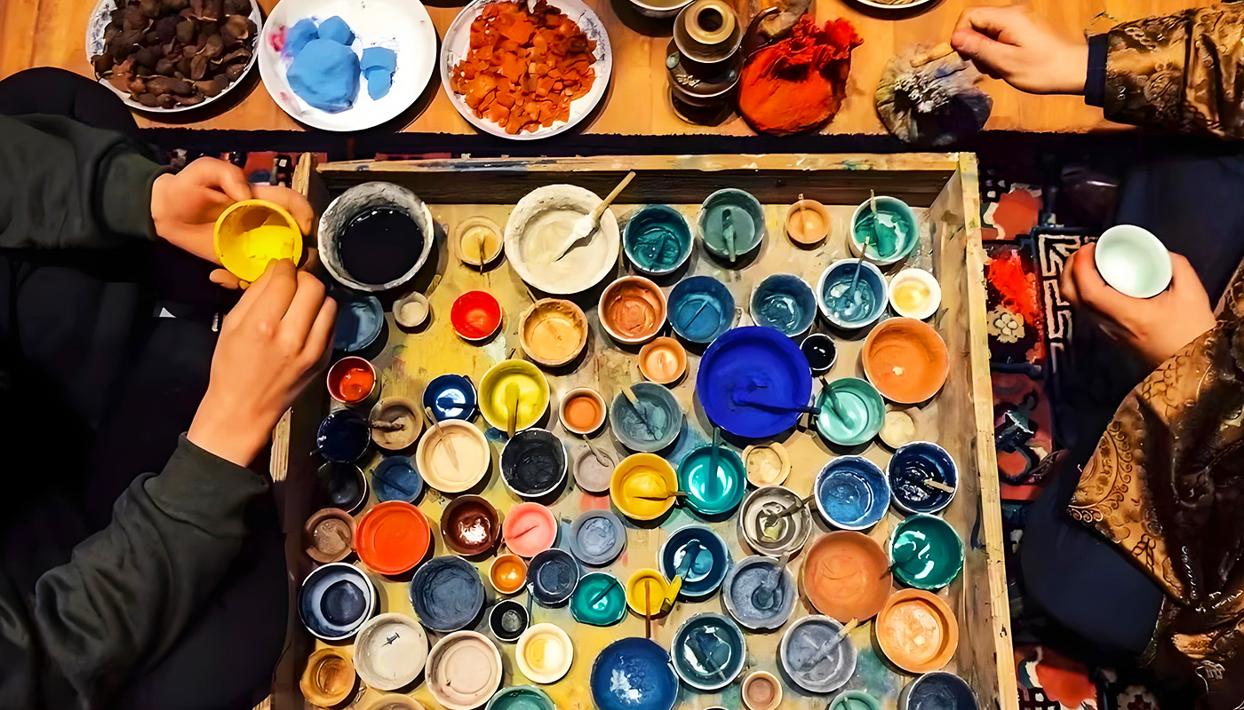 The thangka painting experience is an immersive practice at the heart of Tibetan cultural art, typically conducted in traditional workshops along Barkhor Street in Lhasa or in Shigatse. Under the guidance of a master painter, participants learn to use natural mineral pigments and follow the proportional standards outlined in the Treatise on Iconometry to paint simplified auspicious patterns on specially prepared canvas. The entire workshop is infused with Tibetan Buddhist rituals—from purifying brushes with sutra recitation to consecrating the pigments—imbuing each step with religious significance. Beginners often start with gilded lotus flowers or the Eight Auspicious Symbols, mastering foundational techniques such as grinding pigments, outlining, and flat-wash coloring. By physically engaging with this millennia-old pictorial language, participants not only grasp the spiritual core of thangka as "painting as meditation" but also take home a unique memento that blends faith and aesthetics.