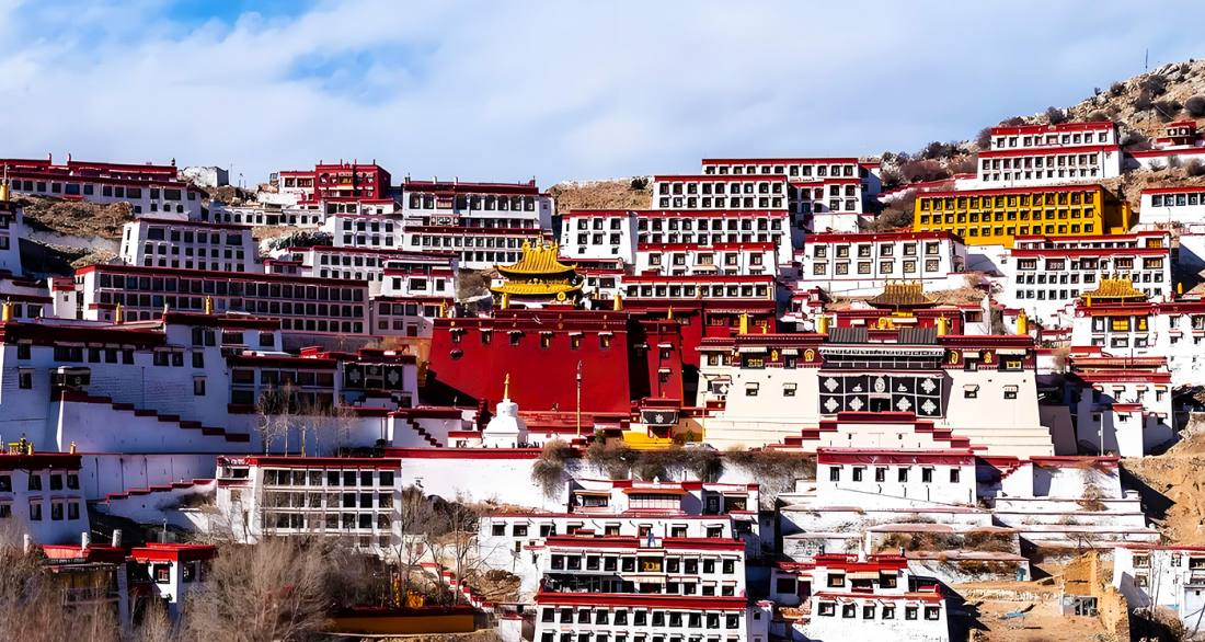 甘丹寺由格魯派創始人宗喀巴大師於1409年興建,是藏傳佛教格魯派的根本道場。寺院依旺波日山勢層疊而建,宛如"天空之城",集宗教神聖與建築藝術於一體。