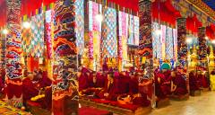 The Tsogchen Hall is the heart of the monastery. Its vast interior, supported by 108 massive pillars, can accommodate thousands of chanting monks. The Je Tsongkhapa Golden Stupa Hall houses a solemn silver stupa dedicated to the master, while his former residence, Tri Dokang, preserves personal relics, offering a glimpse into the ascetic life of this great teacher.