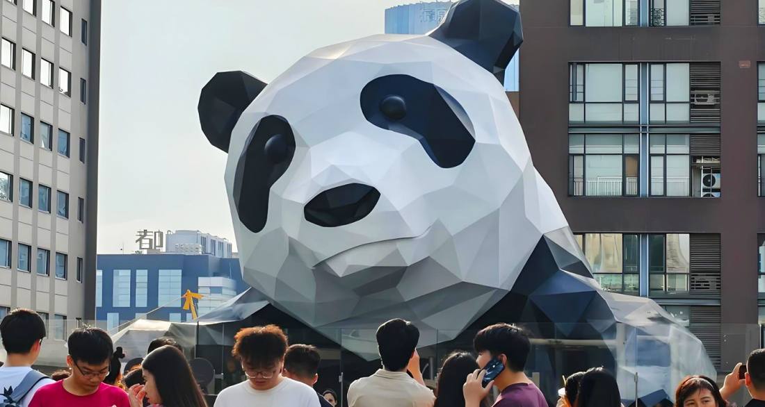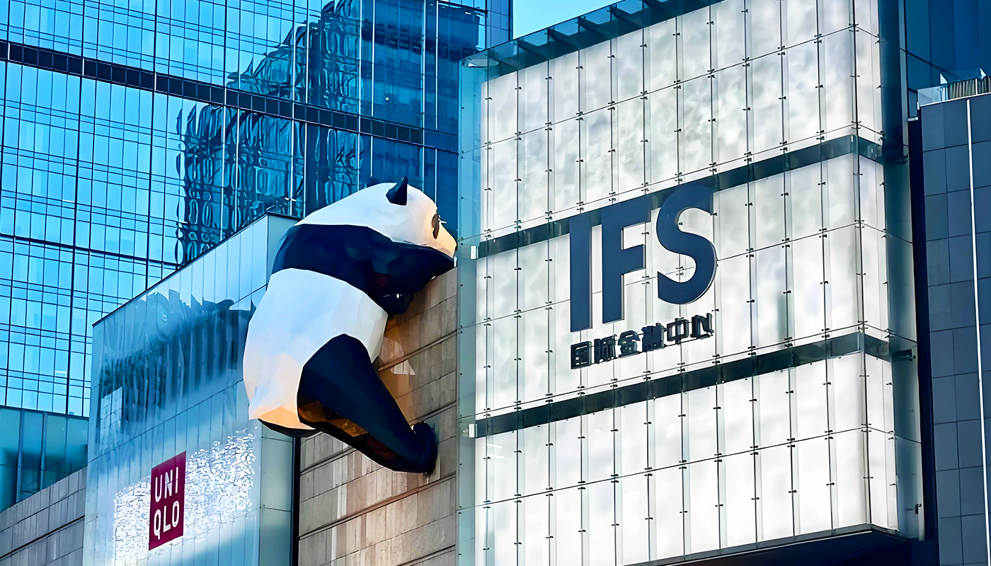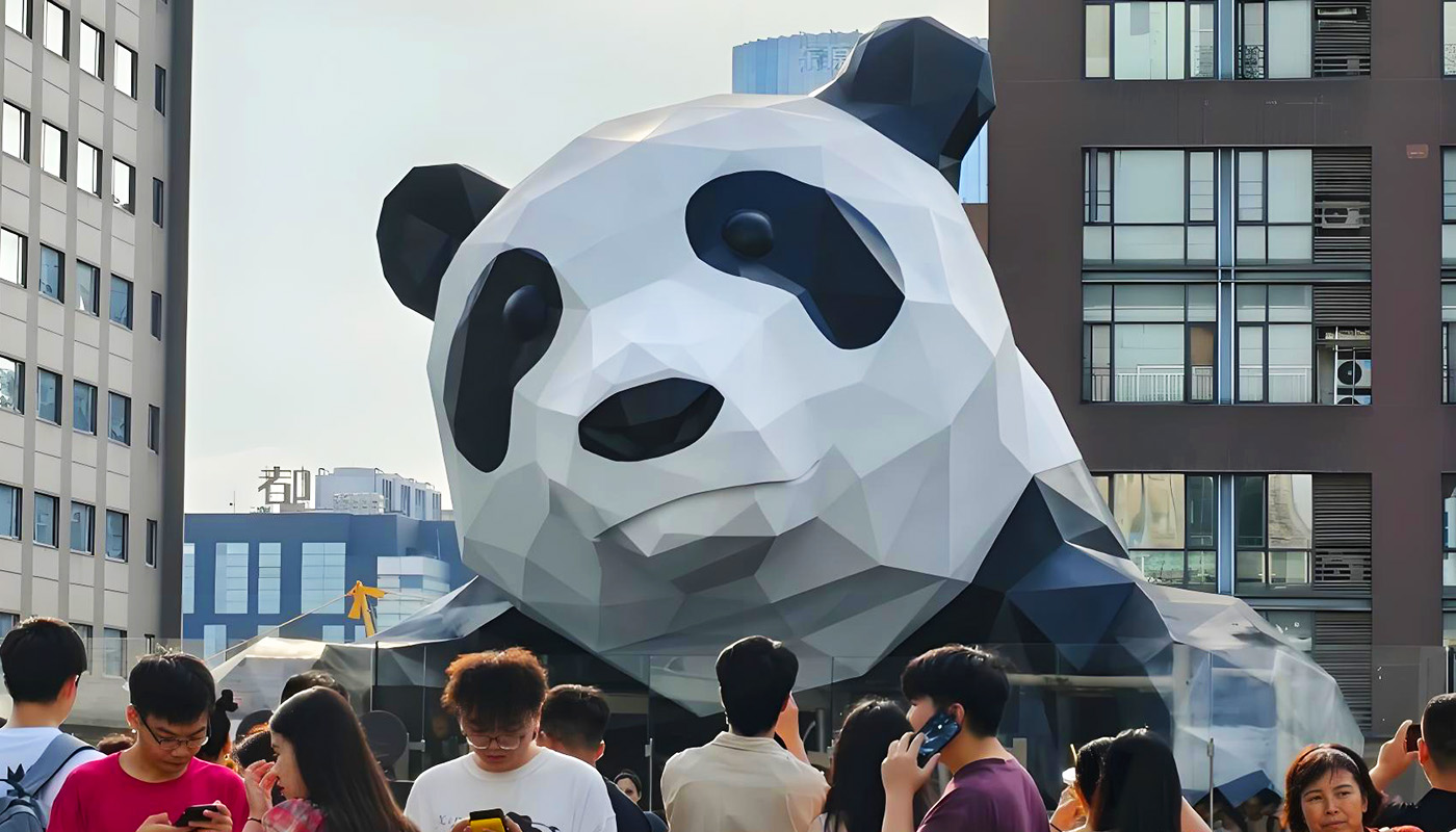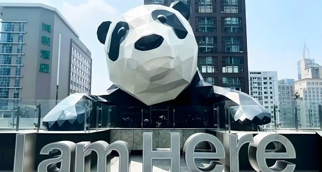 The IFS网红熊猫打卡点, officially named the art installation "I Am Here", is located on the 7th-floor open-air plaza of Chengdu IFS Mall at No. 1, Section 3, Hongxing Road, Jinjiang District, Chengdu. Created by artist Lawrence Argent, this 15-meter-tall, 13-ton stainless steel giant panda sculpture has become an iconic landmark of Chengdu, renowned for its vivid climbing posture and the classic "panda butt" viewing angle. The sculpture is visible 24 hours a day from the outside, while the mall plaza is open from 10:00 to 22:00. Blending art appreciation, urban photography, and commercial leisure, it is a must-visit destination for experiencing Chengdu's modern and trendy culture.