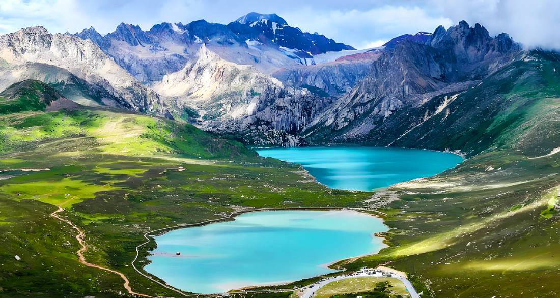 Batang Sister Lakes, known as the "Pearl of the Sichuan-Tibet Highway," are a pair of alpine lakes located northeast of Batang County in Ganzi Tibetan Autonomous Prefecture, Sichuan Province, China, alongside the G318 National Highway. Situated at the foot of Haizi Mountain at an altitude of approximately 4,500 meters, they are among the largest ancient glacial relics on the Qinghai-Tibet Plateau, comprising 23 moraine lakes formed by Quaternary glacial activity, with two adjacent lakes being the most prominent, resembling twin sisters or a pair of glasses, hence the name "Sister Lakes". The lakes exhibit clear, emerald-green waters in summer and are covered with ice and snow in winter, creating a striking contrast with the surrounding snow-capped mountains and grasslands. Designated as a national wetland park, the area also holds rich Tibetan cultural significance, including legends of King Gesar and his consort. Open year-round with free admission and 24-hour access, Sister Lakes are a popular stop for self-driving travelers on the G318 Sichuan-Tibet route, with the best panoramic views available from the highway observation deck.