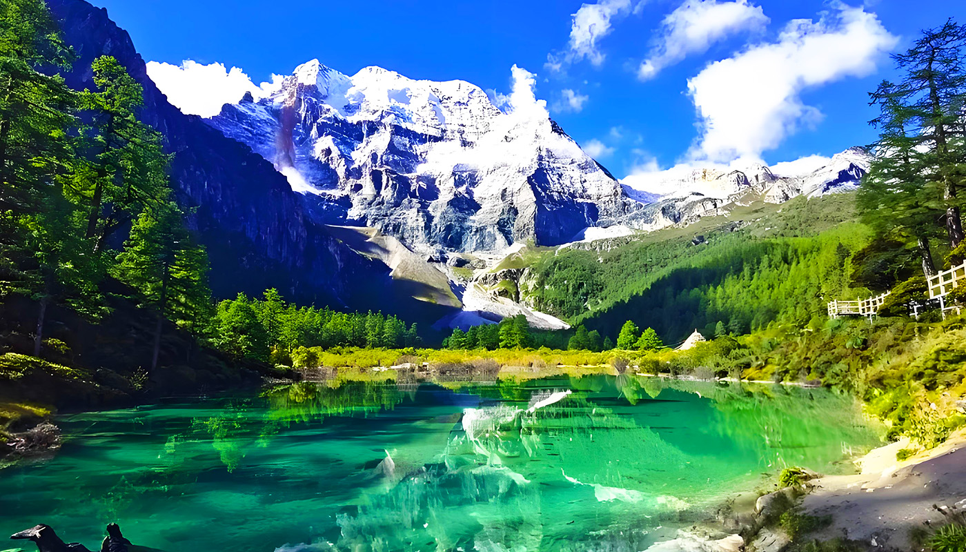 Daocheng Yading Scenic Area is located in Yading Village, Shangri-La Town, Daocheng County, Ganzi Tibetan Autonomous Prefecture, Sichuan Province. Situated in the eastern Qinghai-Tibet Plateau and the central Hengduan Mountains, its altitude ranges from 2,900 meters to 6,032 meters (Mount Chenrezig). The area is centered around three sacred mountains—Chenrezig, Jampelyang, and Chakrasamvara—surrounded by glaciers, forests, meadows, and lakes (such as Milk Lake, Five-Color Lake, and Pearl Lake). It is renowned as "the last pure land on the blue planet". As one of the most pristine and well-preserved alpine natural ecosystems, it rich in biodiversity and was designated a national AAAAA-level tourist attraction in 2020.
