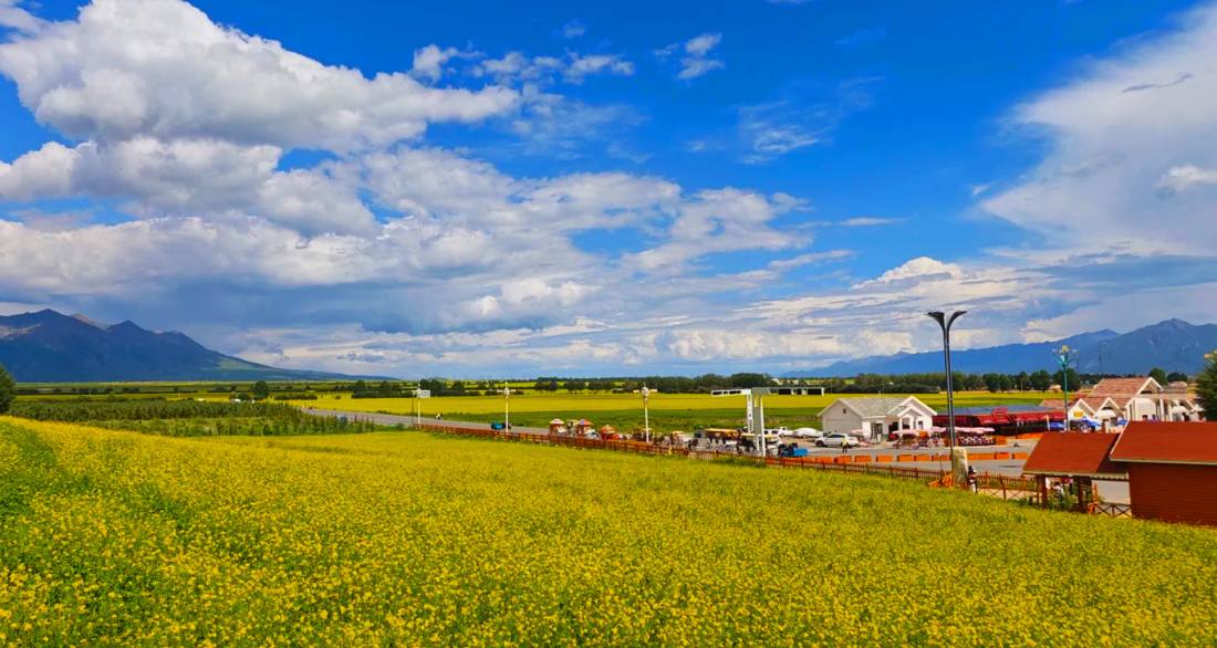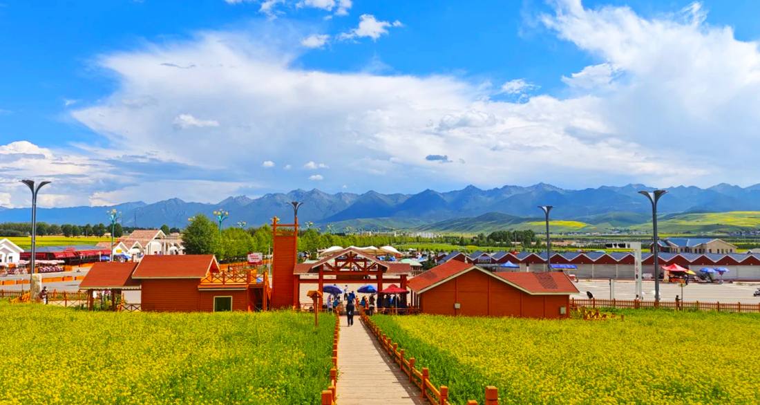 The Hundred-Mile Rape Flower Sea is a national AAAA-level scenic area located in Menyuan Hui Autonomous County, Haibei Tibetan Autonomous Prefecture, Qinghai Province, China. Situated in a basin between the Qilian Mountains and Daban Mountain, it stretches nearly 100 kilometers and covers approximately 535 square kilometers, making it the world’s largest high-altitude rape flower sea. Every July during the blooming season, the golden flower fields blend with distant snow-capped mountains and blue skies, creating a stunning "three-color mosaic" unique to the plateau. The scenic area features viewing facilities such as the Yuanshan Flower Viewing Platform, where visitors can engage in photography, hiking, and participate in the annual Rape Flower Tourism Festival, experiencing the harmonious beauty of ecology and culture.