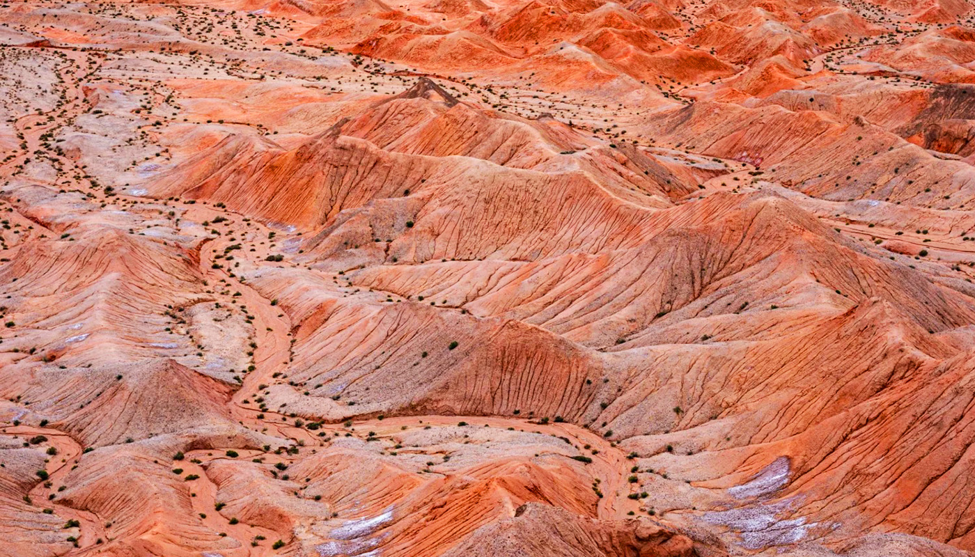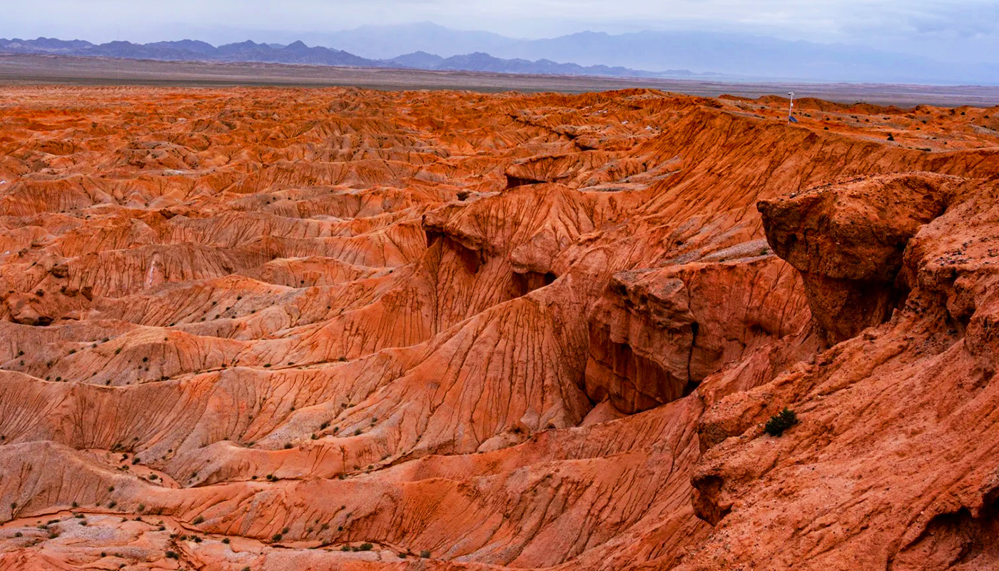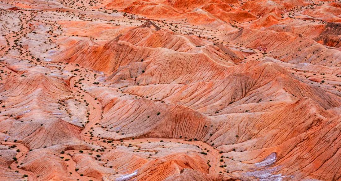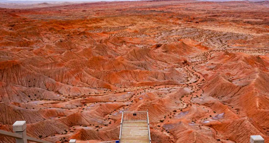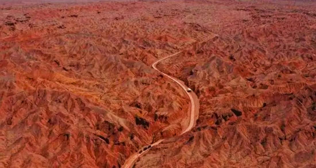 大柴旦紅崖景區位於青海省海西州,是一片未開發的原始自然奇觀。其核心特點是國內唯一同時呈現雅丹與丹霞地貌的複合景觀,地表因富含鐵元素而呈現壯麗的赭紅色,溝壑縱橫的荒涼地貌與火星地表高度相似,被譽為「中國最像火星的地方」。這裡沒有傳統景區設施,卻以其極致的地質形態和星際荒野感,吸引著無數攝影、探險與地質愛好者前來探索。