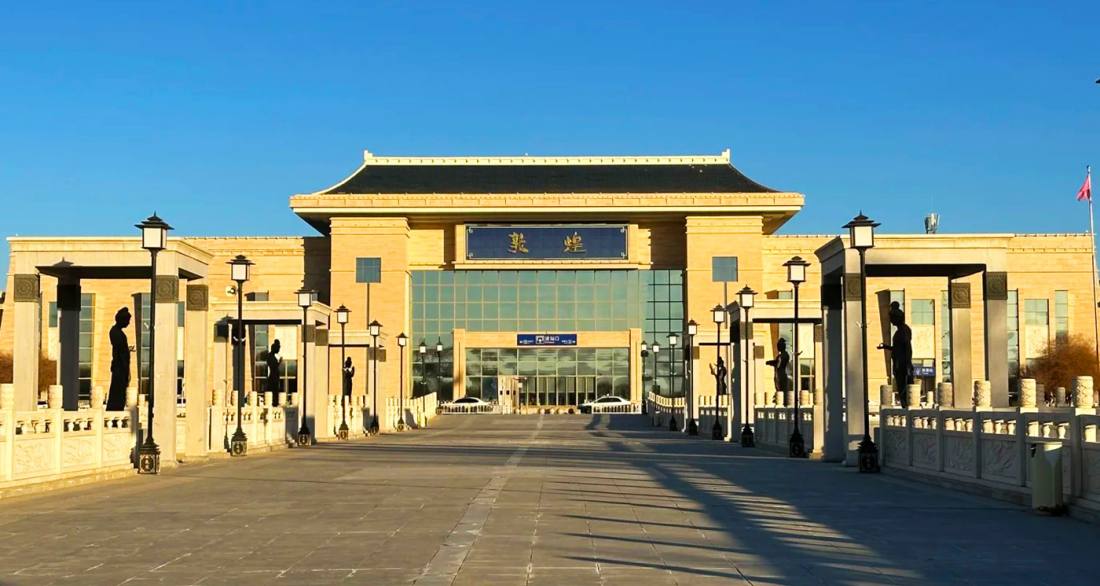 Dunhuang Railway Station (Dunhuang Station) is located in Mogao Town, Dunhuang City, Gansu Province, approximately 12 kilometers east of the city center. It is the terminal station of the Dunhuang Railway, a branch line of the Lanzhou-Xinjiang Railway, and serves as the main railway passenger gateway to Dunhuang. The station commenced operations in 2006. Its architectural design draws inspiration from the "Han-Tang frontier passes," incorporating cultural elements from Dunhuang murals such as caisson ceilings and flying apsaras' ribbons. The walls are constructed with earthy-yellow stone, and the roof resembles a beacon tower, presenting a grand and古朴 Silk Road architectural style, earning it the title "First Stop of Silk Road Culture." The station is well-equipped with facilities including manual and self-service ticket halls, waiting halls, a mother-and-child room, and commercial service areas, providing connections to major cities such as Lanzhou, Xi'an, Yinchuan, and Urumqi. As a vital transportation hub linking Dunhuang with the outside world, Dunhuang Railway Station not only handles passenger distribution but also, with its highly regional design, serves as the first landmark where visitors experience Silk Road culture upon arriving in Dunhuang, achieving an organic integration of modern transport functionality and Dunhuang's historical aesthetics.