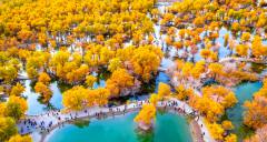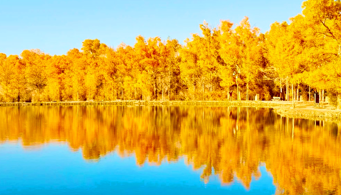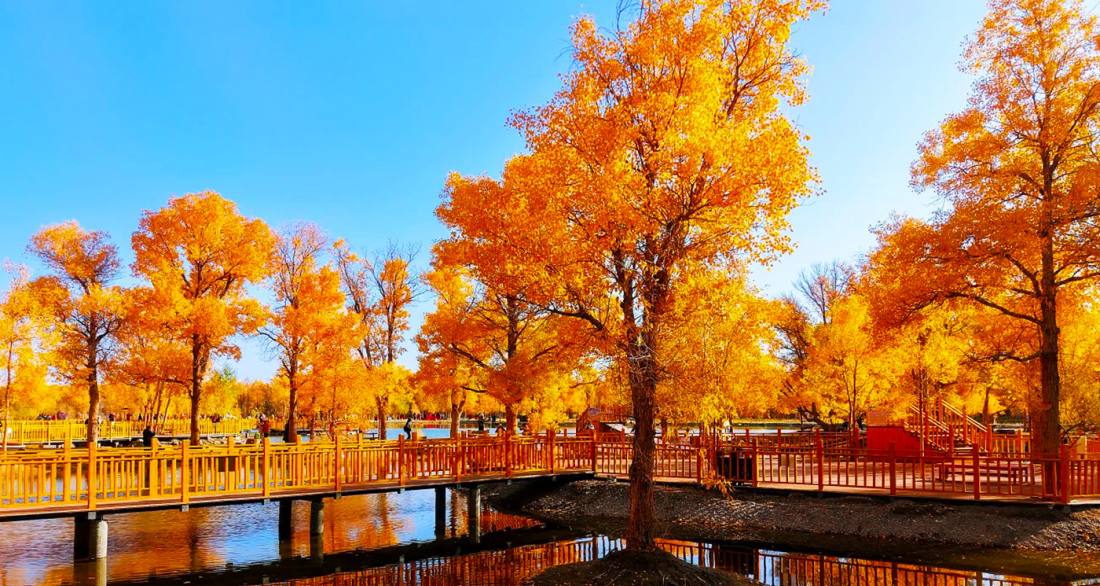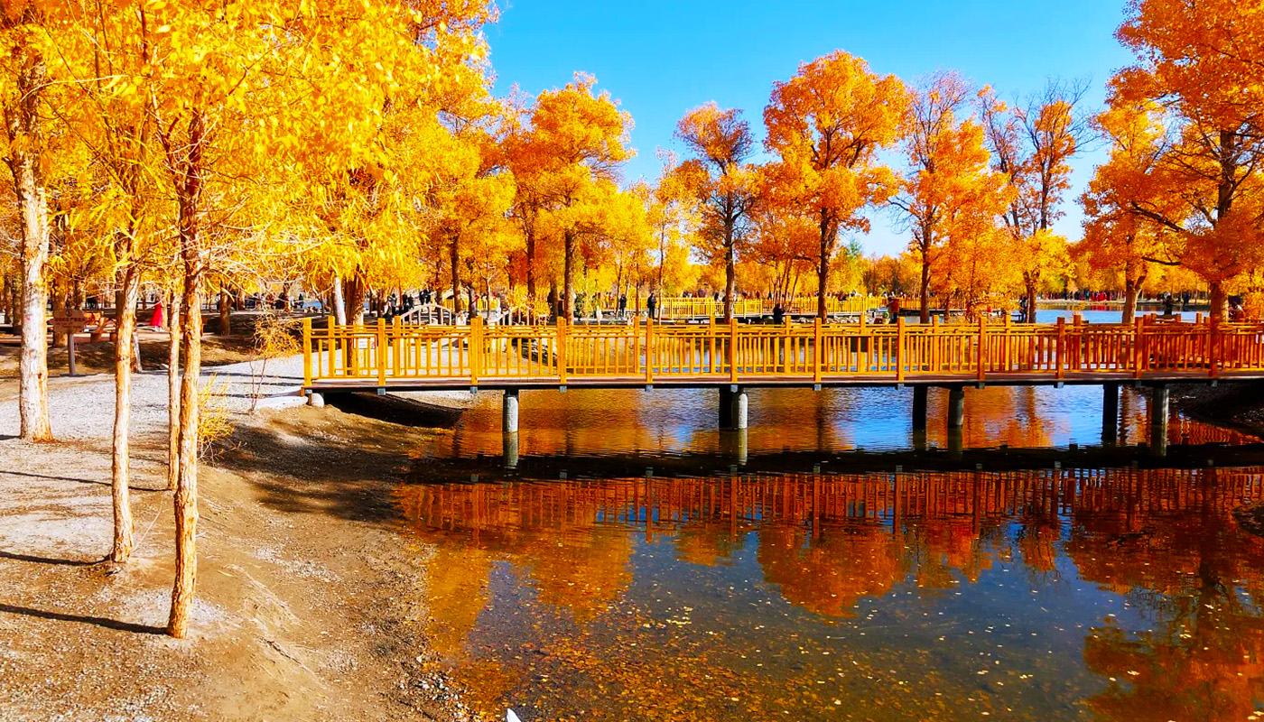 The Jinta Populus Euphratica Forest (Jinta Desert Populus Euphratica Forest Scenic Area) is located approximately 8 kilometers northwest of Jinta County in Jiuquan City, Gansu Province, within the Chaohu Forest Farm. It is the largest artificially cultivated Populus euphratica forest in northwestern China and a vital component of the "Three-North" Shelterbelt Program. Established through extensive ecological afforestation initiatives that began in the mid-20th century, the area now boasts a sprawling forest belt spanning tens of thousands of acres. Its defining allure lies in the unique spectacle of "clear desert waters reflecting golden Populus euphratica"—particularly around the central attraction, Jinbo Lake, where the serene lake mirrors the golden foliage of the autumn forest. This creates a poetic, picturesque scene reminiscent of the Jiangnan water towns, dramatically reshaping conventional perceptions of arid deserts. Beyond its critical ecological role in windbreaking and sand stabilization, this vibrant oasis has evolved into a spiritual landmark, celebrated for embodying the resilience symbolized by the Populus euphratica: "alive for a millennium without withering, standing for a millennium after death, and enduring for a millennium even in decay." Designated as a National AAAA-level Tourist Attraction, the peak season from late September to late October transforms the landscape into a breathtaking tableau. Vast expanses of golden Populus euphratica set against azure skies and crystal-clear waters compose stunning oil-painting-like vistas, drawing countless photographers and travelers. Renowned as "one of Gansu’s most captivating autumn landscapes" and a "golden gem on the Silk Road," it stands as a testament to harmony between human endeavor and nature’s resilience.