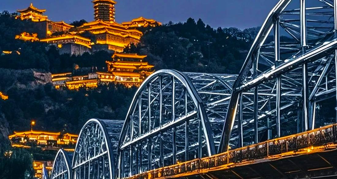 中山橋(原名「蘭州黃河鐵橋」)坐落於甘肅省蘭州市城關區,橫跨黃河,北接白塔山,南臨黃河風情線,是黃河上第一座真正意義上的永久性近代鋼鐵橋樑,素有「天下黃河第一橋」之稱。該橋由清政府於清光緒三十三年(1907年)耗資白銀三十萬六千餘兩,委託德國泰來洋行承建,美國橋樑公司設計,並於宣統元年(1909年)竣工通行。橋長233.5米,寬7.5米,採用五孔四墩鋼桁架結構,橋身全部建材均由德國海運至天津,再經鐵路、駱駝和人力輾轉運抵蘭州,歷時近兩年建成,工程之艱巨被譽為「中國近代橋樑史的里程碑」。1954年,橋面經加固修繕並加設弧形鋼拱梁,沿用至今。作為全國重點文物保護單位和國家AAA級旅遊景區,中山橋不僅是蘭州溝通黃河南北的交通樞紐與城市象徵,更承載了百年來的滄桑歷史,如今已成為集歷史、建築、景觀於一體的步行觀光地標,見證了蘭州的變遷與發展。