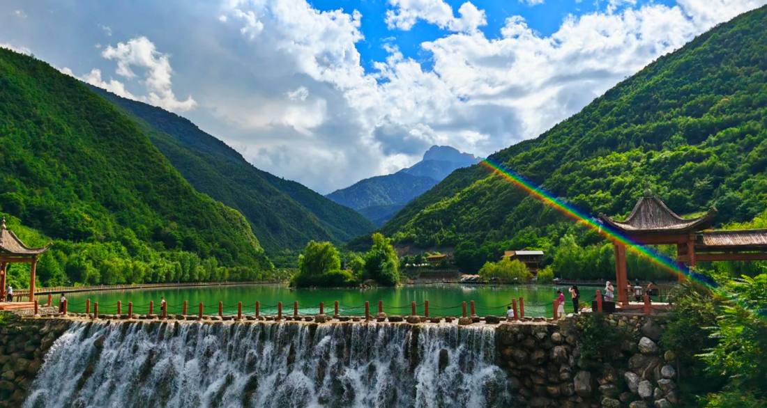Emangou (Eman Valley) is located within the Guangegou Grand Scenic Area in Dangchang County, Longnan City, Gansu Province. It is a core component of the Guanggou National Forest Park (a National AAAAA-level Tourist Attraction), together with Guanzhougou forming the complete natural ecosystem known as "Guangegou." Emangou is characterized by alpine lakes, waterfalls, streams, and primeval forest landscapes. Its central highlight is Zedangcuo Heavenly Lake (also called "Emangou Heavenly Lake") at an elevation of approximately 2,850 meters, whose water is as clear as jade, surrounded by fir forests and rhododendron blooms. The valley also features other water landscapes such as Emangou Lake (Jinyang Lake), Jinyang Waterfall, and Panlong Waterfall, along with over ten kilometers of plank trails through virgin forest. Compared to the steep canyons of Guanzhougou, Emangou's terrain is gentler and more expansive, exhibiting more characteristics of a plateau lake wetland. The scenic area skillfully incorporates Qiang and Tibetan ethnic culture, with legends of "Prince Guanzhu and Princess Eman," and includes modern leisure facilities like a 9D glass skywalk. The scenery varies with the seasons: summers are cool like spring, and autumns display a tapestry of colorful foliage. It is a comprehensive landscape retreat integrating alpine lake sightseeing, forest hiking, cultural experience, and ecological wellness.