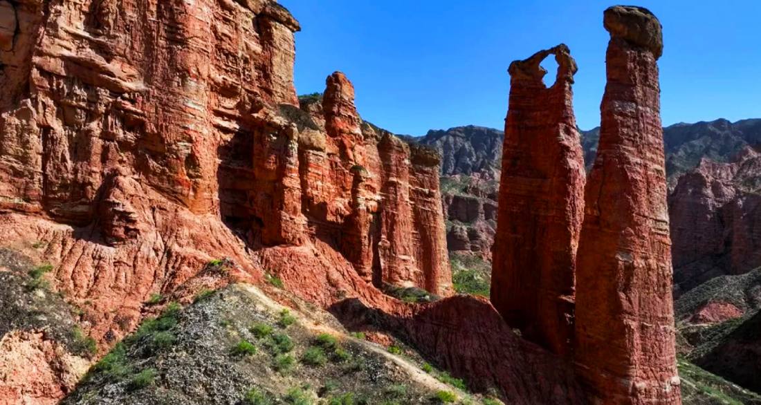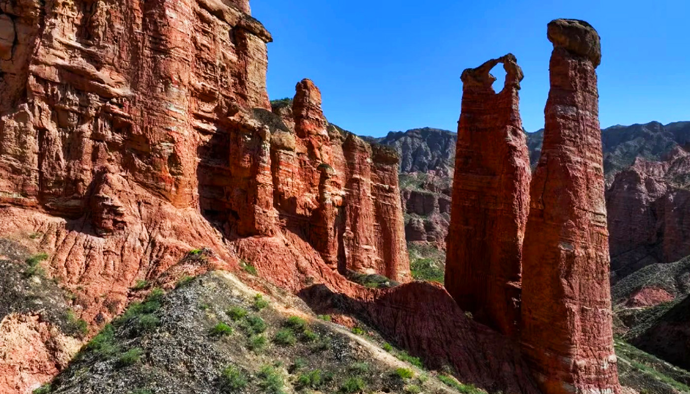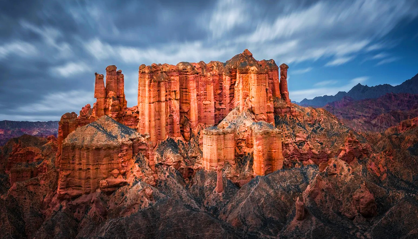Binggou Danxia is located in Binggou Village, Kangle Town, Sunan Yugur Autonomous County, Zhangye City, Gansu Province. It is an integral part of the Zhangye Danxia National Geopark and is recognized globally as the typical representative and naming site of the “palace-style latticework Danxia landform.” Characterized by crimson cliffs, isolated peaks, stone walls, and deep gorges, it is especially renowned for its majestic and precipitous castle-like peak forests and dense stone pillar clusters, hailed as the “Number One Marvel Among Danxia Landscapes Worldwide.” It presents a magnificence distinctly different from the colorful Danxia. The scenic area is primarily divided into two main touring zones: Xiaoxitian and Daxitian, featuring numerous lifelike figurative landscapes such as “Louvre Phantom,” “Camel Welcoming Guests,” and “Root of the Earth.” These formations document tens of millions of years of geological history shaped by tectonic movements and erosion of red-bed sandstone. Combining exceptional scientific research value with visual impact, it is currently a National AAAAA Tourist Attraction.