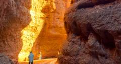 平山湖大峽谷位於甘肅省張掖市甘州區平山湖蒙古族鄉境內,距市區約五十六公里,是國家AAAA級旅遊景區。其地質構造屬於紅層地貌,由中生代侏羅紀至新生代第三紀沉積形成的紅色砂礫岩構成,距今已有億萬年歷史,被譽為「活的地質史教科書」。峽谷集丹霞地貌、雅丹地貌與峽谷奇觀於一體,谷內峰林奇特,溝壑深邃,色彩以紅白和赭紅色為主,擁有「一線天」、「九龍匯海」、「情侶峰」等標誌性景觀。遊客可選擇普通遊或深度遊,體驗徒步、駱駝騎行、探險車穿越等多種方式,感受其雄渾蒼涼的自然壯美。