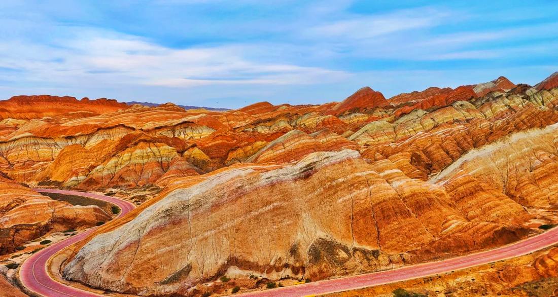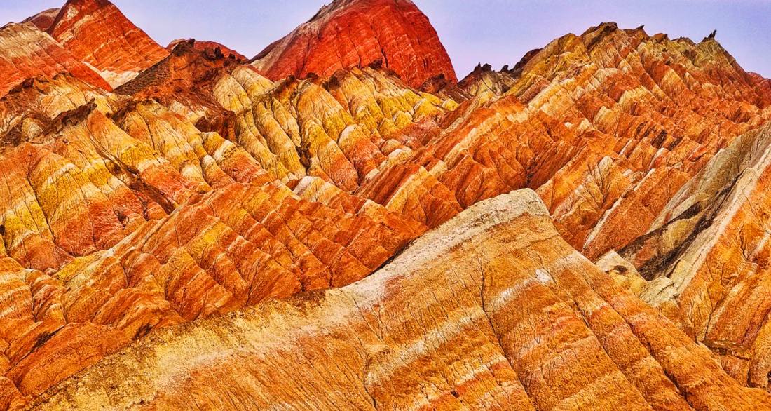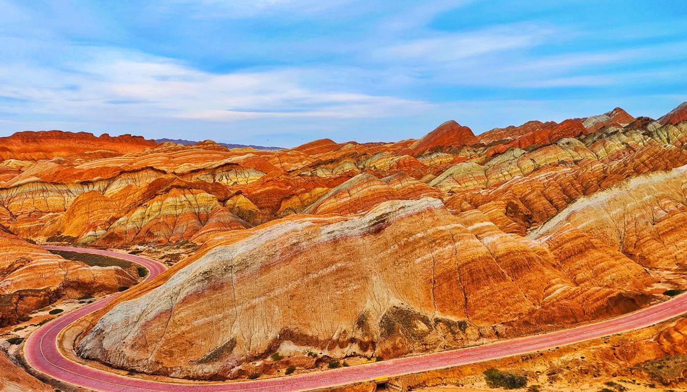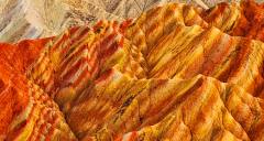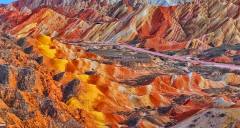 The Colorful Danxia is located in Niujiaying Town, Linze County, Zhangye City, Gansu Province. As one of the most typical and largest Danxia landform clusters in the arid regions of northern China, it is recognized as a UNESCO Global Geopark and a National AAAAA Tourist Attraction. Its defining feature is the world's only large-scale, high-saturation composite landform of Danxia and colorful hills, with dozens of distinct color layers—most notably interwoven shades of red, yellow, orange, green, white, and gray-black—earning it the title "God's Palette." Shaped by hundreds of millions of years of geological evolution, the area exhibits unique lattice-like and palace-style structures. During sunrise and sunset, the interplay of light and shadow transforms the mountains into a surreal spectacle described as "colors like rich cinnabar, brilliance like radiant sunset clouds." It is a world-class natural wonder that integrates geological research, natural aesthetics, and photographic artistry.