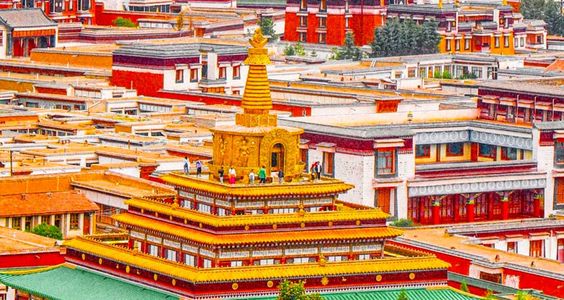 Labuleng Monastery is located in Xiahe County, Gannan Tibetan Autonomous Prefecture, Gansu Province. As one of the six great monasteries of the Gelug school of Tibetan Buddhism, it was founded in 1709 during the Qing Dynasty and is renowned as the "World Tibetan Studies Center." The monastery faces south and covers an area of 866,000 square meters. It comprises six colleges, 16 Buddha halls, 18 living Buddha residences, and over ten thousand monks' quarters, featuring the world's longest corridor of prayer wheels. Its architecture blends Tibetan and Han styles, primarily using stone and wood, and follows the distinctive principle of "no wood visible outside, no stone visible inside." The red, white, and yellow exterior walls contrast with the glided bronze tiles and golden roofs. The monastery houses more than 10,000 cultural relics, including gilded Buddha statues, thangkas, ritual objects, and ancient texts. It hosts grand religious events annually, such as the Great Prayer Festival in the first lunar month, serving as the religious and cultural heart of the Gannan region.