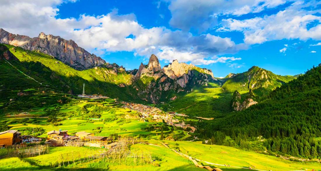 Zagana is located in Yiwa Township, Diebu County, within the Gannan Tibetan Autonomous Prefecture of Gansu Province. It is a natural stone city situated at an average altitude of 3,000 to 3,300 meters, with its Tibetan name meaning "stone box." Comprising four villages—Dongwa, Yeri, Dari, and Daiba—along with the Lhasang Monastery, the landform resembles a grand palace naturally constructed by massive rock walls, integrating landscapes such as stone forests, canyons, primeval forests, and alpine meadows. It was highly praised by the American botanist Joseph Rock as "the birthplace of Adam and Eve." Zagana is not only a National AAAA-level tourist attraction and a national geological park but also hosts the "Agro-pastoral Forestry Complex System" recognized by the FAO as a Globally Important Agricultural Heritage System (GIAHS). It blends Tibetan farming, nomadic culture, and Tibetan Buddhist heritage, and was recently designated as a "Best Tourism Village" by the UNWTO, making it a model of deep integration between natural and cultural landscapes in the Gannan region.