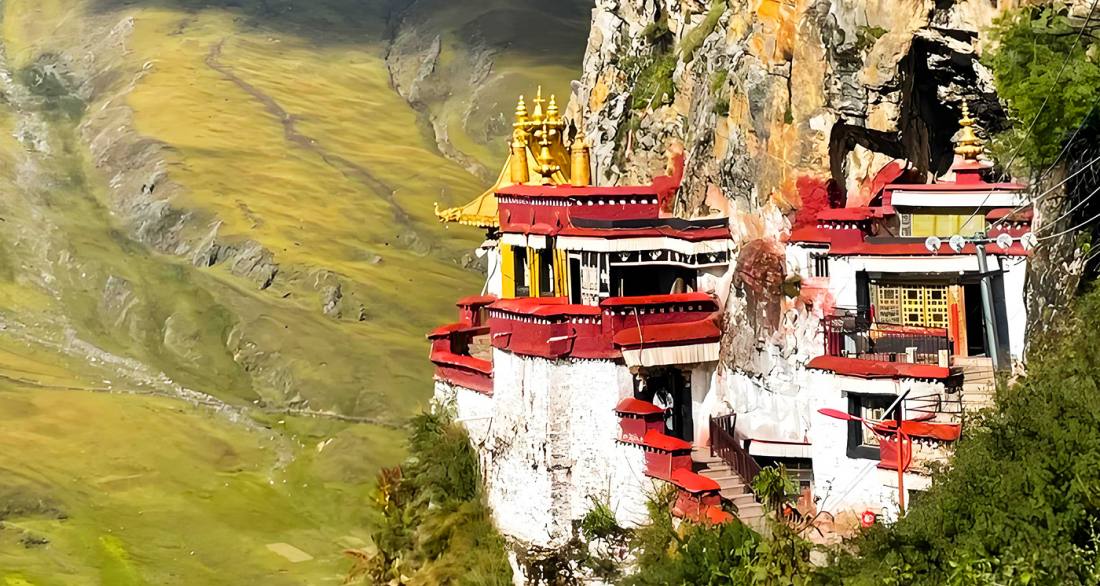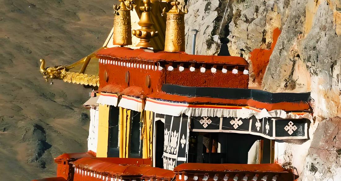 Zhayebasi Temple, one of the four great hermitages of Tibet, is perched on the cliffs of the Lhariningbu Mountain in Dazi District, Lhasa, at an altitude of approximately 4,360 meters. This Nyingma school temple was founded in the 7th century during the reign of King Songtsen Gampo for his consort, Princess Mansa Ruchen, boasting a history of about 1,500 years. Its most distinctive feature is the integration of cave and temple structures seamlessly built into the mountain crevices, preserving historical sites including the meditation caves of Songtsen Gampo and Padmasambhava. Surrounded by striking natural scenery, its profound spiritual significance is captured in the local Tibetan proverb: "The soul of Tibet is in Lhasa, and the soul of Lhasa is in Yerpa". The temple is open daily from 9:00 to 17:30, with direct bus services available from Barkhor Square in Lhasa.