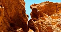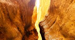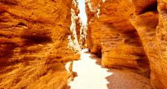 The Lop Nur Grand Canyon is located in Yuli County, Bayingolin Mongol Autonomous Prefecture, Xinjiang, at the foot of the Kuruktag Mountains. It is a deep canyon formed over hundreds of millions of years by wind erosion and water flow (ancient river channels). It is not a traditional river canyon but rather presents as a massive earth fissure, approximately 4.9 kilometers in length, with a maximum vertical drop of 120 meters. Its widest point is about 80 meters, while its narrowest is only wide enough for one person to pass through. The canyon walls on both sides are colorful and distinctly layered, clearly displaying sedimentary rock strata from different geological periods, making it a natural textbook for studying geological changes. Under intense wind erosion, a variety of yardang landforms have formed within the canyon, creating a mysterious and spectacular "underground palace" or "natural sculpture museum" of rugged, bizarre rocks. Due to its location on the edge of the Lop Nur wasteland, the climate is extremely arid, and the area is seldom visited by people, preserving the pristine, desolate, and majestic beauty of the wilderness. It is a coveted destination for adventurers and photography enthusiasts. Walking at the bottom of the canyon, the immense vertical rock walls create a strong sense of visual oppression, inspiring awe at nature's craftsmanship. This canyon is an important component of the natural wonders of the Lop Nur region, showcasing the unique geological allure of the Earth's "dry pole."