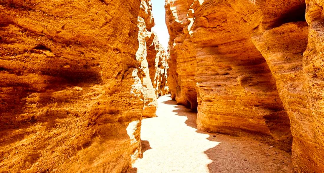 羅布泊大峽谷位於新疆巴音郭楞蒙古自治州尉犁縣境內,庫魯克塔格山腳下,是一條因億萬年風蝕和水流(古河道)切割形成的深邃峽谷。它並非傳統意義上的河流峽谷,而是呈現為一條巨大的地裂縫,全長約4.9公里,最深處垂直落差達120米,最寬處約80米,最窄處僅容一人通過。峽谷兩側的岩壁色彩斑斕,層次分明,清晰地展示了不同地質年代的沉積岩層,是研究地質變遷的天然教科書。在強烈的風蝕作用下,谷內形成了千姿百態的雅丹地貌,怪石嶙峋,宛如一座神秘壯觀的“地下宮殿”或“自然雕塑博物館”。由於其地處羅布泊荒原邊緣,氣候極端乾旱,人跡罕至,保留了原始、蒼涼、雄渾的荒野之美,是探險家和攝影愛好者嚮往的秘境。行走在谷底,巨大的垂直岩壁帶來強烈的視覺壓迫感,讓人感嘆大自然的鬼斧神工。該峽谷是羅布泊地區自然奇觀的重要組成部分,展現了地球“旱極”的獨特地質魅力。