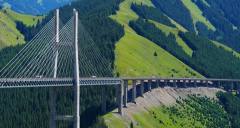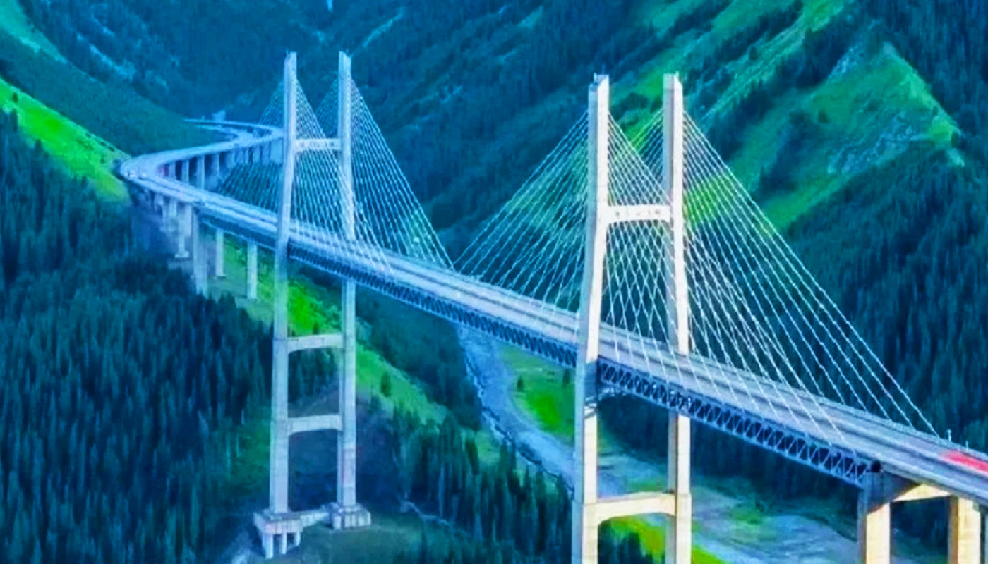 The Guozigou Bridge is a landmark engineering project located in the Guozigou Valley of Huocheng County, Ili Kazakh Autonomous Prefecture, Xinjiang. It is a key section of the National Expressway Network G30 (Lianyungang-Khorgos Expressway). As China's first highway double-tower, double-cable-plane steel truss girder cable-stayed bridge, the bridge spans approximately 700 meters in total length, with its deck soaring about 200 meters above the valley floor. Its main structure is light and elegant, gracefully traversing the steep canyon of the Tianshan Mountains with a beautiful S-shaped curve, achieving the remarkable feat of "turning a natural chasm into a thoroughfare." Completed and opened to traffic in 2011, the bridge not only fundamentally transformed the transportation landscape of the Ili River Valley, significantly shortening travel time between Ürümqi and Yining, but its sleek design also blends perfectly with the surrounding natural scenery of snow-capped mountains, spruce forests, and meadows. Hailed as the finishing touch of the "First Scenery of Ili" and a harmonious model of modern engineering within natural landscape, driving across it feels like moving through a painting in the clouds, serving as a breathtaking prelude for many travelers entering the Ili region.