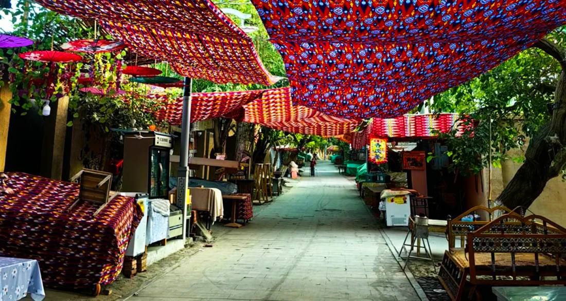 The Hotan Thousand-Mile Grape Corridor is located in the Hotan region of Xinjiang, a green ecological corridor stretching over a thousand kilometers formed by trellising grapevines over rural roads and farmland. Constructed in the 1980s, it integrates grape cultivation with roads, irrigation channels, and farmland shelterbelts, creating a remarkable three-dimensional agricultural marvel that "occupies more sky than land." It serves not only as a vital agricultural production facility (yielding fresh and dried grapes annually) but also as an ecological barrier that improves the microclimate of the oasis and prevents wind and sand erosion, earning it the title "Green Great Wall Built by Grapes." Visitors can drive or stroll beneath the canopy, enjoying the cool shade of intertwined vines and experiencing the unique pastoral charm of southern Xinjiang. It is a comprehensive rural landmark that embodies ecological, economic, scenic, and cultural value.