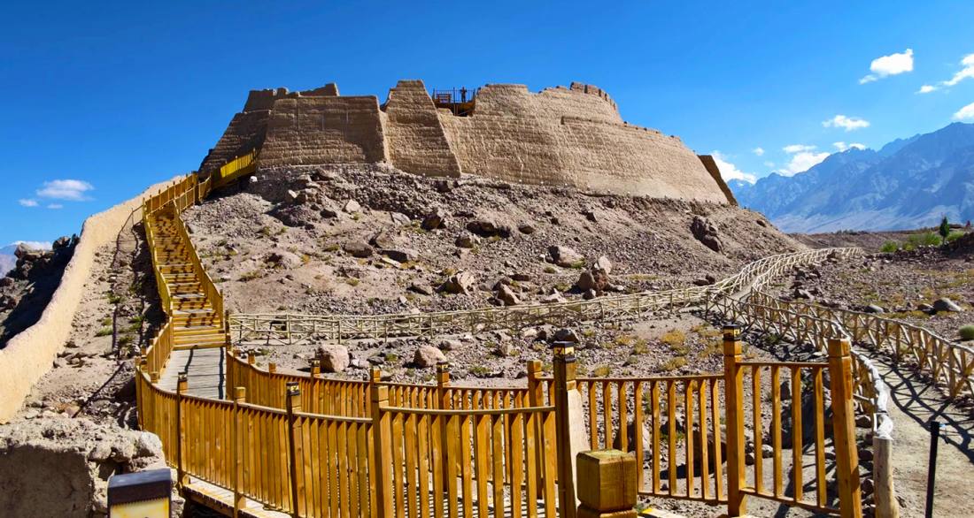 The Taxkorgan Stone Fortress is situated on the northern edge of Taxkorgan Tajik Autonomous County on the Pamir Plateau in Xinjiang, at an altitude of approximately 3,100 meters. It is a significant ancient city ruin that bears witness to millennia of history along the Silk Road and is designated as a National Key Cultural Relics Protection Unit. Its history can be traced back to the Han Dynasty, when it served as the royal city of the Puli Kingdom, one of the Thirty-Six Kingdoms of the Western Regions. During the Tang Dynasty, it became the capital of the Jiepantuo Kingdom. It was a crucial military and trade hub at the junction of the Central and Southern Routes of the Silk Road, and historical figures such as Xuanzang and Marco Polo passed through it. The fortress is built on a massive rocky hill about 20 meters high, with a commanding and precipitous terrain. The outlines of ruins such as city walls, gates, Buddhist temples, and government offices are still clearly visible. Its architectural style blends elements from the Central Plains of China, India, and Persia. Today, as a core component of the "Pamir Tourist Area" (a National 5A-level scenic spot), this "Stone City" together with the Golden Grass Beach National Wetland Park at its foot forms a magnificent historical tableau of the high plateau. It is an essential destination for exploring ancient Silk Road civilization and experiencing Tajik ethnic culture.