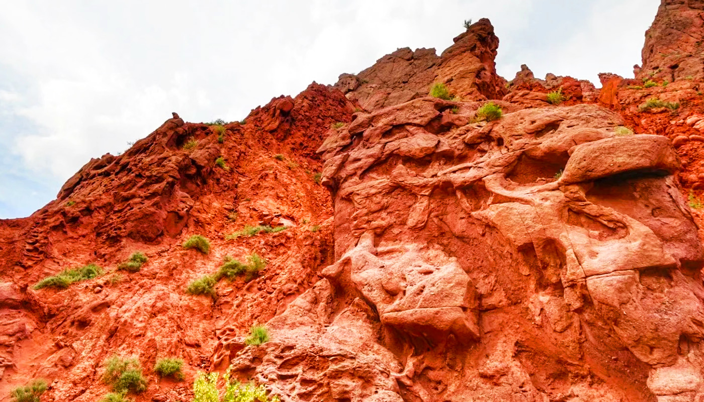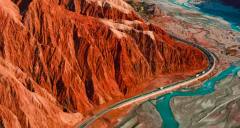 The Oyitak Red Valley is located in Akto County, Kizilsu Kirghiz Autonomous Prefecture, Xinjiang, on the western side of the G314 National Highway (China-Pakistan Friendship Highway), approximately 100 kilometers from Kashgar City. It is a unique Danxia landform shaped by millions of years of wind and water erosion on Tertiary-period red conglomerate sandstone. Its core landscape features fiery red mountain ranges stretching for several kilometers, with rock faces densely covered in bubble-like holes of various sizes, resembling a honeycomb. Geologically termed "tafoni" or "honeycomb weathering," the formations look like massive red sponges or the surface of Mars from a distance, earning it the nicknames "Southern Xinjiang's Flaming Mountains" and "Bubble Mountain." The valley's colors change with the sunlight, appearing intensely brick-red on sunny days and turning golden-red or purplish-red at dawn and dusk, creating a powerful visual impact. Currently an undeveloped, pristine natural landscape, it is freely open to the public and is a popular spot for photography enthusiasts and those seeking unique geological sights. It is important to note that this is a separate attraction from the nearby ticketed "Oyitak Glacier Park."