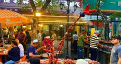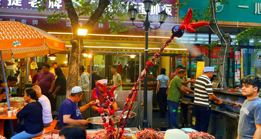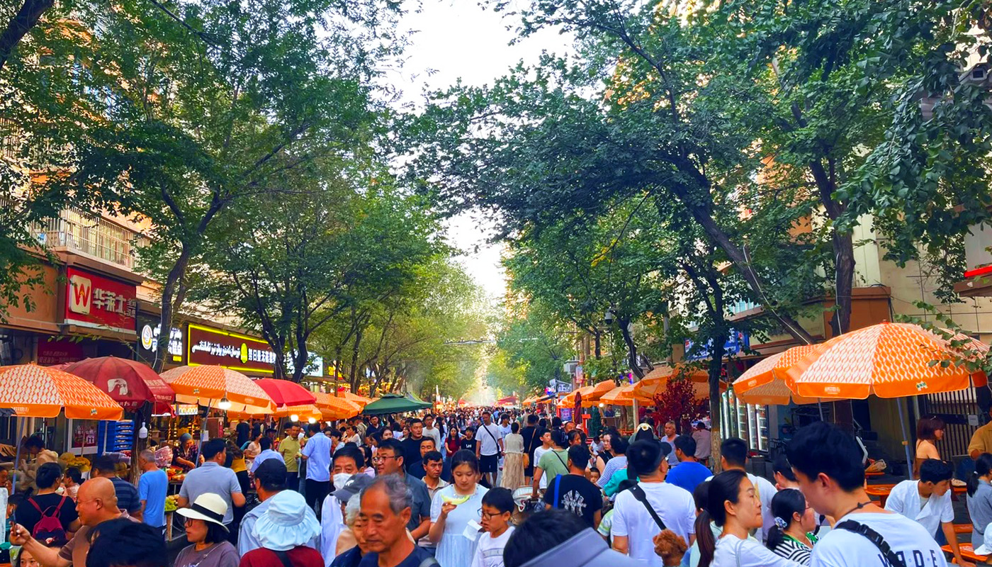 Hetan Er Street is a century-old food street in Shayibake District, Urumqi, stretching about 800 meters and famed for its vibrant atmosphere, often described as "the aroma of a pot of pilaf filling half the city." Originating in 1915 as a resting point for Hotan merchants on the Silk Road, it now brings together over a hundred authentic Xinjiang snacks, such as baked buns, fig pilaf, and handcrafted ice cream. Among them, the "Kashgar Handful" baked buns, with their crispy skin, savory filling, and price of three yuan each, have become a popular must-try. After its renovation in 2023, the street incorporated ethnic elements like Atlas silk-patterned street lamps and Twelve Muqam musical score floor tiles, along with theme post offices and cultural creative stalls, creating an immersive "food + culture + tourism" experience space, acclaimed as "Urumqi's Museum on the Tip of the Tongue."