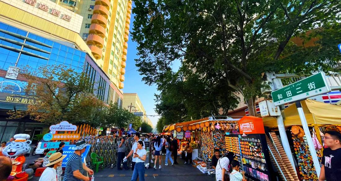 和田二街是位於烏魯木齊市沙依巴克區的一條百年美食老街,全長約800米,以“一鍋抓飯半城香”的煙火氣聞名。這條街始於1915年,曾是絲綢之路上和田商人的落腳點,如今匯聚了烤包子、無花果抓飯、手工冰淇淋等上百種新疆地道小吃,其中“喀什一把抓”烤包子因皮脆肉香、三元一個的價格成爲熱門打卡美食。街區在2023年改造後,融合了艾德萊斯綢紋樣的路燈、十二木卡姆樂譜地磚等民族元素,並設有主題郵局、文創攤位,形成了“美食+文化+旅遊”的沉浸式體驗空間,被譽爲“烏魯木齊的舌尖博物館”。