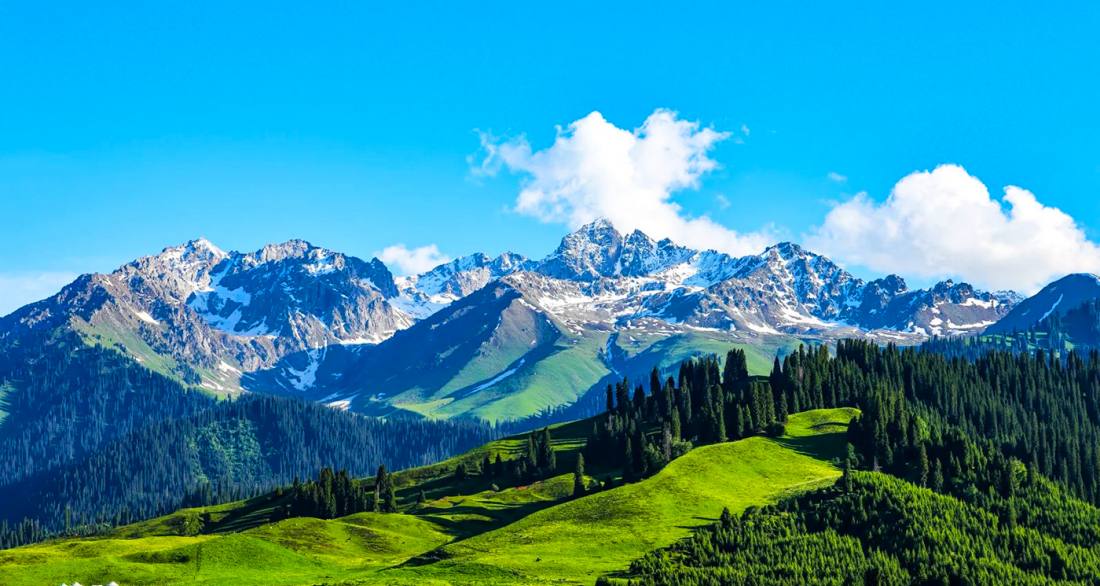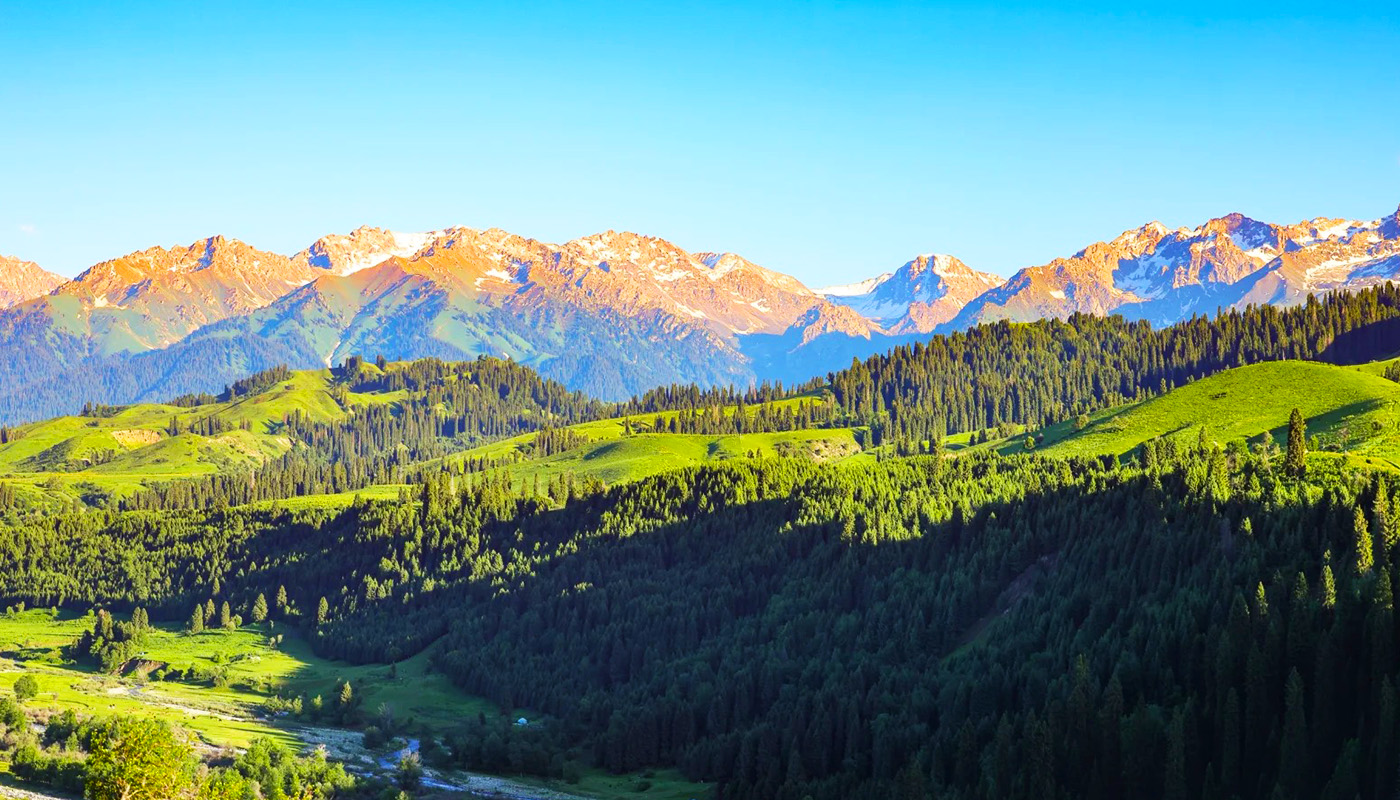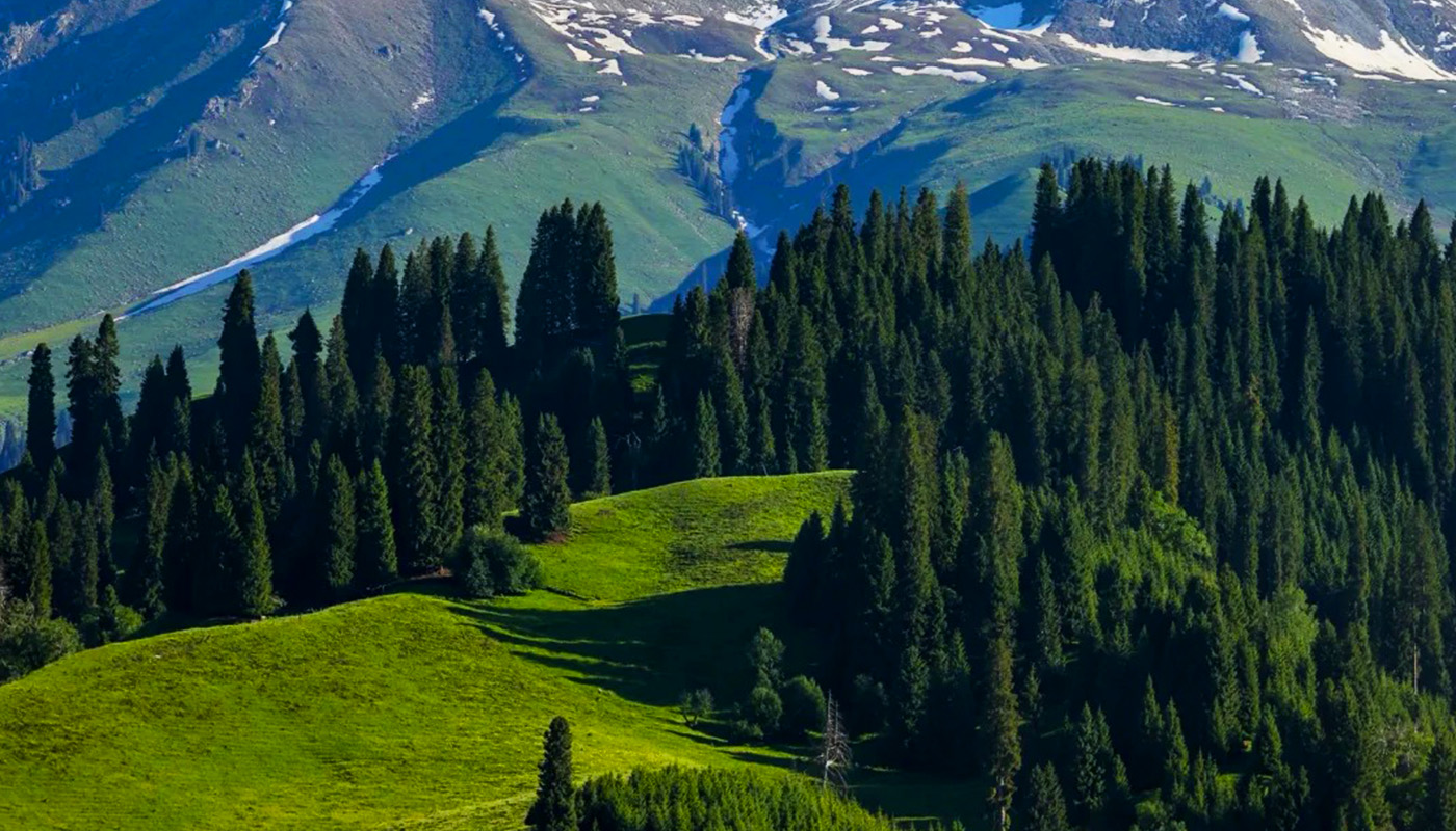 Qiaxi Forest Park is located in the mountainous southeastern region of Gongliu County, Ili River Valley, Xinjiang, situated on the northern slopes of the Nalati Mountain range, a branch of the Tianshan Mountains. It is a National Forest Park and a National AAA-level tourist attraction. The park covers a total area of 38,000 hectares, with elevations ranging from 1,500 to 2,500 meters. Formed by ancient glacial erosion into a U-shaped valley, it centers around well-preserved primitive Tianshan spruce forests, boasting a forest coverage rate of over 95%. The park features key landscapes such as the Qiaxi Grassland, the "King of Tarim Spruce," the Shimen Waterfall, and Swallow Bridge, blending alpine meadows, valley streams, snow-capped glaciers, and Kazakh herding villages. In summer, wildflowers blanket the slopes, while in winter, the area glistens with frost, earning the reputation that "beyond the Great Wall lies Jiangnan in Ili, and the most beautiful part of Ili is Qiaxi." As a vital component of the West Tianshan Nature Reserve, the park is not only a habitat for rare species like snow leopards and ibex but also preserves the traditional nomadic lifestyle of the Kazakh people, including seasonal pasture rotations. Visitors can hike along pastoral trails, ride horses through forests, or stay in grassland yurts, experiencing an immersive journey that blends natural ecology with nomadic culture.