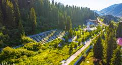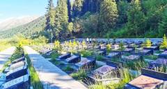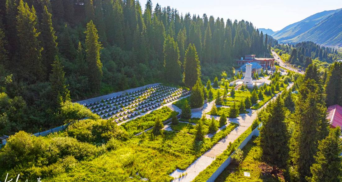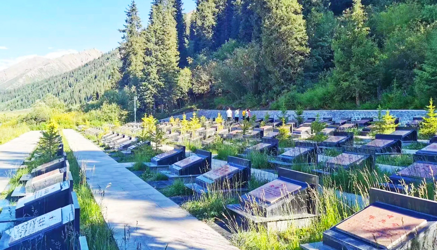 The Qiao'er'ma Martyrs Cemetery is located at the intersection of the Duku Highway and Provincial Road S315 in Nilka County, Ili Kazakh Autonomous Prefecture, Xinjiang. It is a national revolutionary martyrs' cemetery established to commemorate the PLA soldiers who sacrificed their lives while building the Tianshan Duku Highway. The cemetery consists of a white marble monument, martyrs' tombs, and the Tianshan Duku Highway Memorial Hall. The front of the monument is inscribed with the words "Eternal glory to the comrades who gave their lives for the Duku Highway project," while the back bears the names of the martyrs and historical accounts of the road construction. The memorial hall displays artifacts, including construction tools and photographs, vividly depicting the soldiers' arduous efforts to carve a path through extreme and treacherous conditions. Since its completion, the cemetery has undergone multiple renovations and expansions, becoming an autonomous region-level martyrs' memorial facility and a patriotic education base, attracting a large number of visitors annually. Particularly touching is the story of veteran Chen Jungui, who voluntarily guarded the cemetery for over forty years. His deeds were adapted into the film "Waiting for the Mountain," ensuring that the "Tianshan Spirit" is passed down through generations.