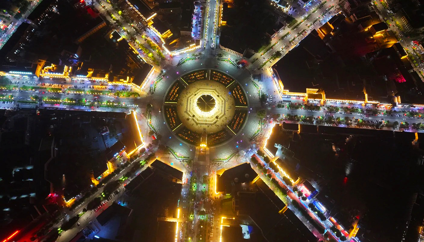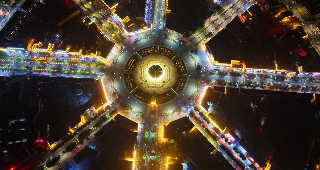 Tekes County is located in the southeastern part of the Ili River Valley in Xinjiang. It is renowned as the "world's only complete and best-preserved Bagua City" and is a National AAAA-level tourist attraction and a National Historical and Cultural City. The county town was originally designed by the Taoist master Qiu Chuji during the Southern Song Dynasty (1180) based on the Later Heaven Bagua diagram from the Book of Changes, and its planning was later refined in 1937 by the Ili reclamation commissioner Qiu Zongjun. The layout features concentric radial patterns with the Tai Chi Altar at its center, forming a structure of "one ring with eight streets, one ring with sixteen streets, one ring with thirty-two streets, and one ring with sixty-four streets" arranged according to the 64 hexagrams. Remarkably, the entire city operates without traffic lights yet maintains smooth traffic flow. As the summer capital of the Wusun Kingdom during the Han Dynasty, the county preserves sites such as ancient Wusun tomb complexes, grassland stone figures, and rock paintings. The area is surrounded by natural and cultural landscapes, including the Kalajun UNESCO World Natural Heritage site, the historical and cultural village of Qiongkushitai, and the Kesang Karst Cave. It stands as a vital Silk Road hub that integrates Zhouyi culture, Wusun history, grassland ecology, and multi-ethnic culture.