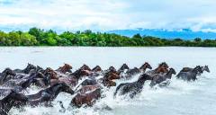 The Tianma (Heavenly Horse) Tourism and Cultural Park is located on the Ka'erkanite Grassland in Zhaosu County, Ili, Xinjiang. Centered around the cultural theme of the "Hometown of China's Heavenly Horses," it is a National AAA-level tourist attraction integrating world-class horse displays, standardized horse racing events, ethnic equestrian performances, and ecological sightseeing. Covering approximately 1,200 acres, the park features a high-standard racetrack, a Heavenly Horse Museum, an equestrian training base, and a Kazakh folk culture experience area. Its core highlight is the daily spectacle of "Heavenly Horses Bathing in the River," where over a hundred Ili horses gallop and splash through the waters of the Tekes River, recreating the epic scene described in the Records of the Grand Historian: "Divine horses shall come from the northwest." As the main venue for the Zhaosu Tianma International Tourism Festival, the park employs a "horse racing + tourism + culture" model, combining dynamic performances such as kokpar (buzkashi), "girls chasing on horseback," and "thousands of horses galloping" with static displays like horse milk product processing and traditional saddle making. It comprehensively presents the two-thousand-year history of breeding, domestication, and cultural heritage of the Heavenly Horses of the Western Regions, making it a landmark destination for experiencing the fusion of grassland nomadic civilization and the modern horse industry.