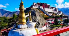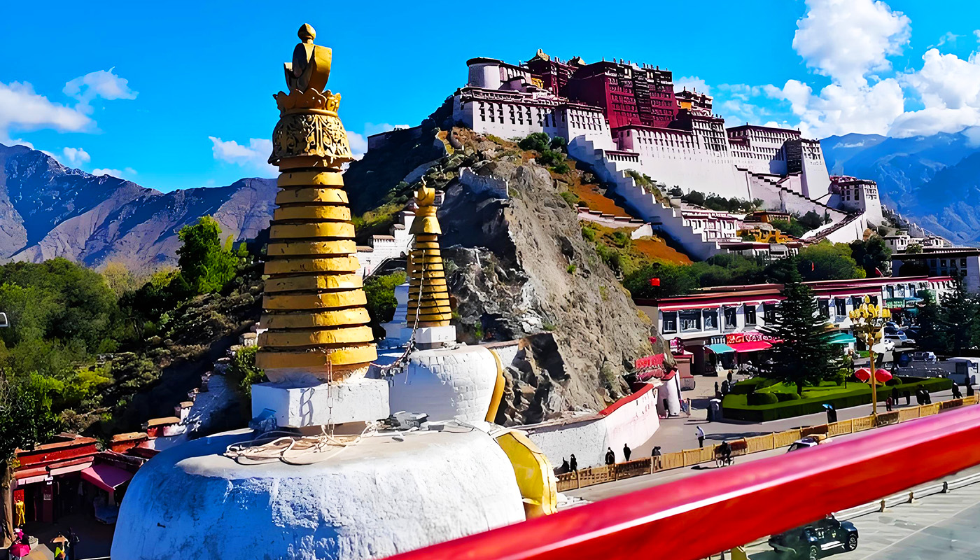 The Yaowang Mountain Viewing Platform is located on Beijing Middle Road in Chengguan District, Lhasa, just across the street from the Potala Palace. It is a popular spot for capturing the same perspective as the image on the back of the Renminbi banknote and for watching the sunrise over the Potala Palace. The viewing platform is free to enter, with summer opening hours typically from morning to evening, and winter hours from morning to dusk. Visitors can take a bus and alight at the "Yaowangshan Food Market" stop. The mountain is known in Tibetan as "Jiaburi," meaning "mountain at the corner," and features historical sites such as the Char Lupu Grotto Temple. Visitors must bring their ID documents and be mindful of altitude sickness, moving slowly to acclimate.