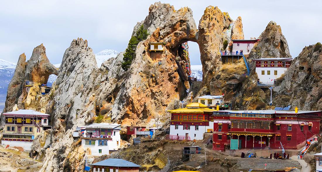 Dzitri Monastery is located on Dzitri Mountain in Dêngqên County, Qamdo City, Tibet. It is the largest and oldest surviving Bon (Bönpo) monastery in Tibet, integrating a suspended Bon sacred temple, a living fossil of Zhangzhung civilization, and a center of esoteric studies in eastern Tibet. It is acclaimed as the "Sky City of Bon."