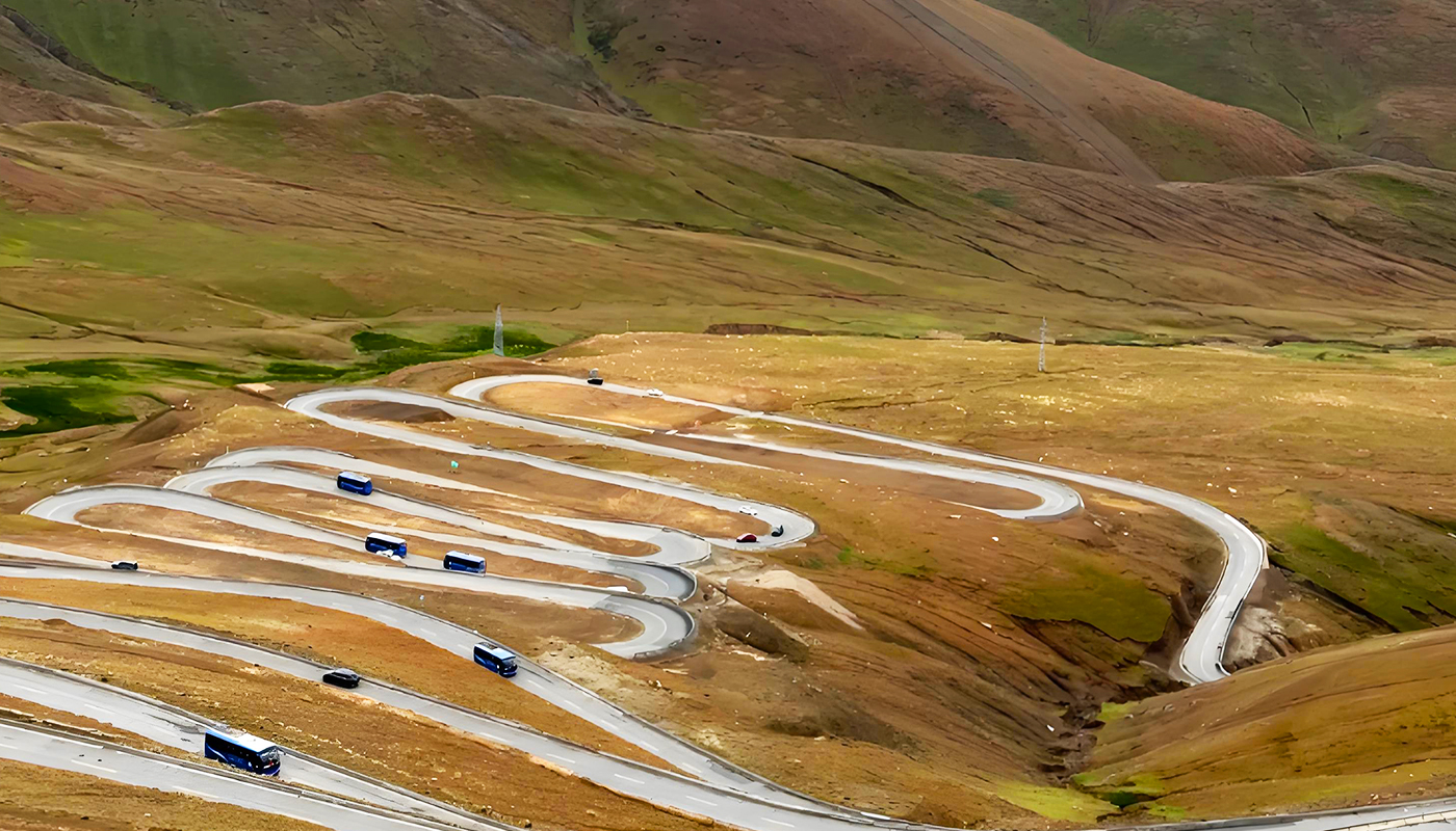 The Everest 108 Bends, located within Mount Qomolangma National Park in Tingri County, Shigatse City, Tibet, is an essential section of the road leading to Everest Base Camp. Named for its succession of over a hundred hairpin turns, this winding mountain road begins at the park entrance at an elevation of approximately 4,300 meters and climbs to Gyawu La Pass at 5,198 meters, spanning about 40 kilometers with a vertical drop of nearly 900 meters. It is acclaimed as "the highest-altitude miracle road in the world." From the Gyawu La Pass observation deck, visitors can overlook the spectacular panorama of the bends coiling across the barren plateau like a giant dragon, while simultaneously gazing at four towering peaks above 8,000 meters: Mount Everest, Lhotse, Makalu, and Cho Oyu. Although the road is now fully paved with asphalt, its perilous curves and extreme high-altitude conditions still pose a rigorous challenge to driving skills. Serving as a breathtaking prelude to the journey to the top of the world, it is both a trial for extreme travel and a masterpiece of earthly artistry cherished by photographers and adventurers.